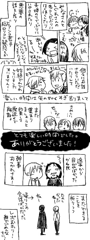 (゚∀゚)やー (゚∀゚)全然描き足りない! ほんとに濃く楽しい時間でした。 伝えきれないのが口惜しいですぐぎぎ。 ありがとうございましたー!